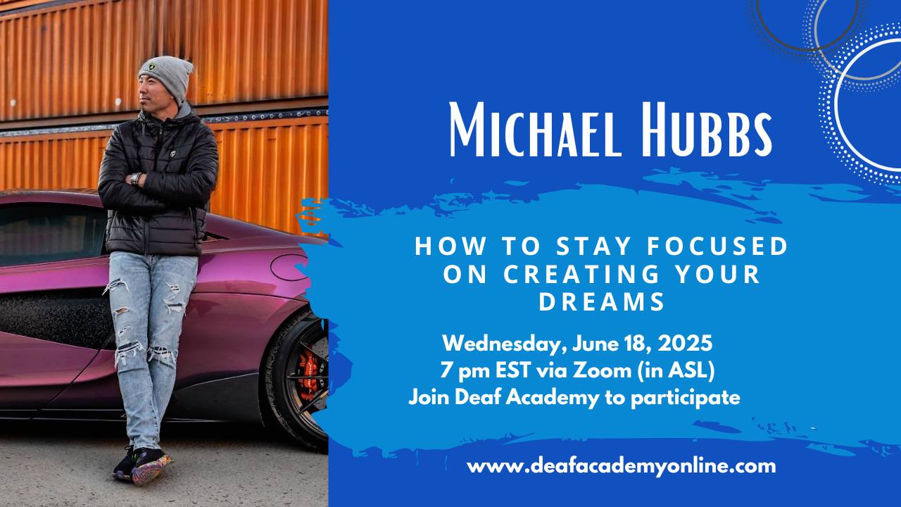 Your monthly membership gives you the opportunity to LEARN and GROW. Each month features a Deaf expert on personal growth!
